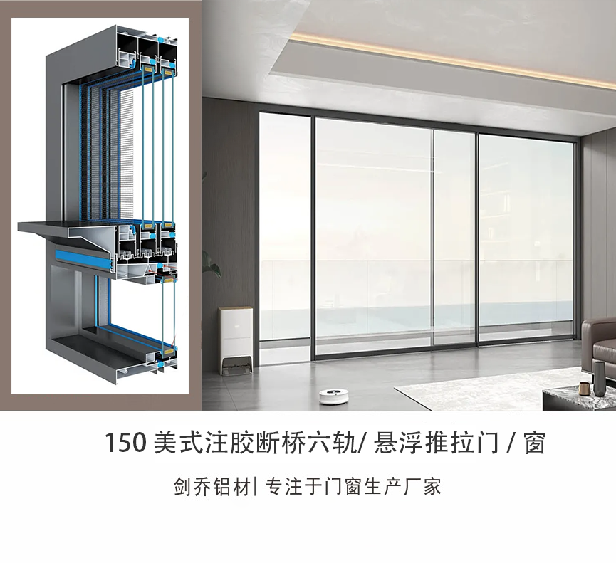 JQE-150 美式注膠斷橋六軌/懸浮 重型推拉門/窗